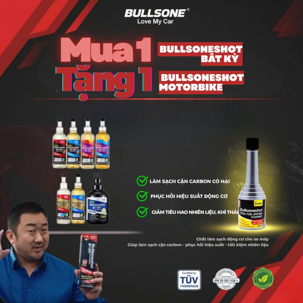 Lần đầu thử dung dịch vệ sinh động cơ Bullsoneshot, công nhận máy nổ êm hơn hẳn, ga nhạy hơn, không còn mùi xăng sống. Giao hàng nhanh, hướng dẫn sử dụng rõ ràng.